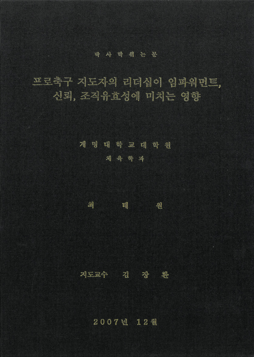 전문서적 프로축구지도자의 리더십이 임파워먼트, 신뢰, 조직유효성에 미치는영향