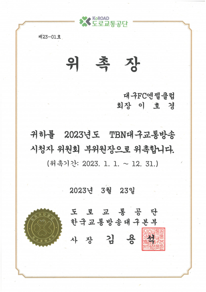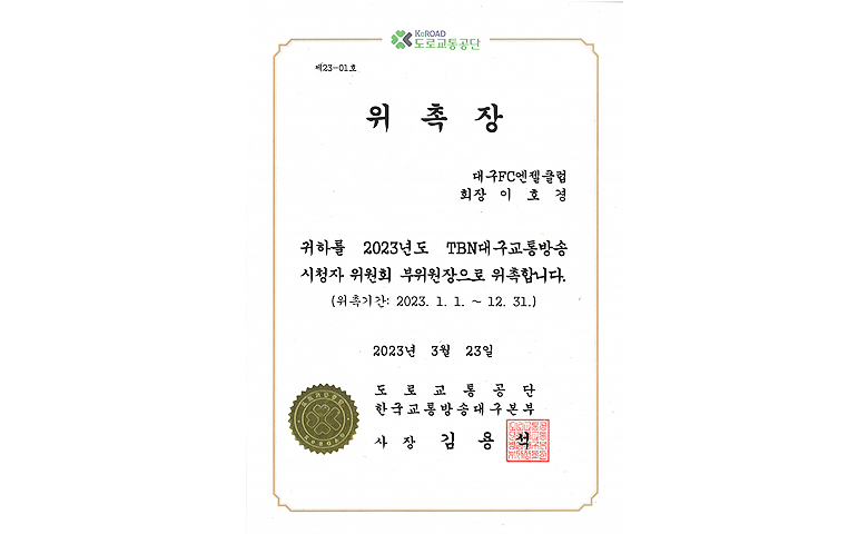사회공헌 TBN 교통방송국 시청자 위원회 부위원장